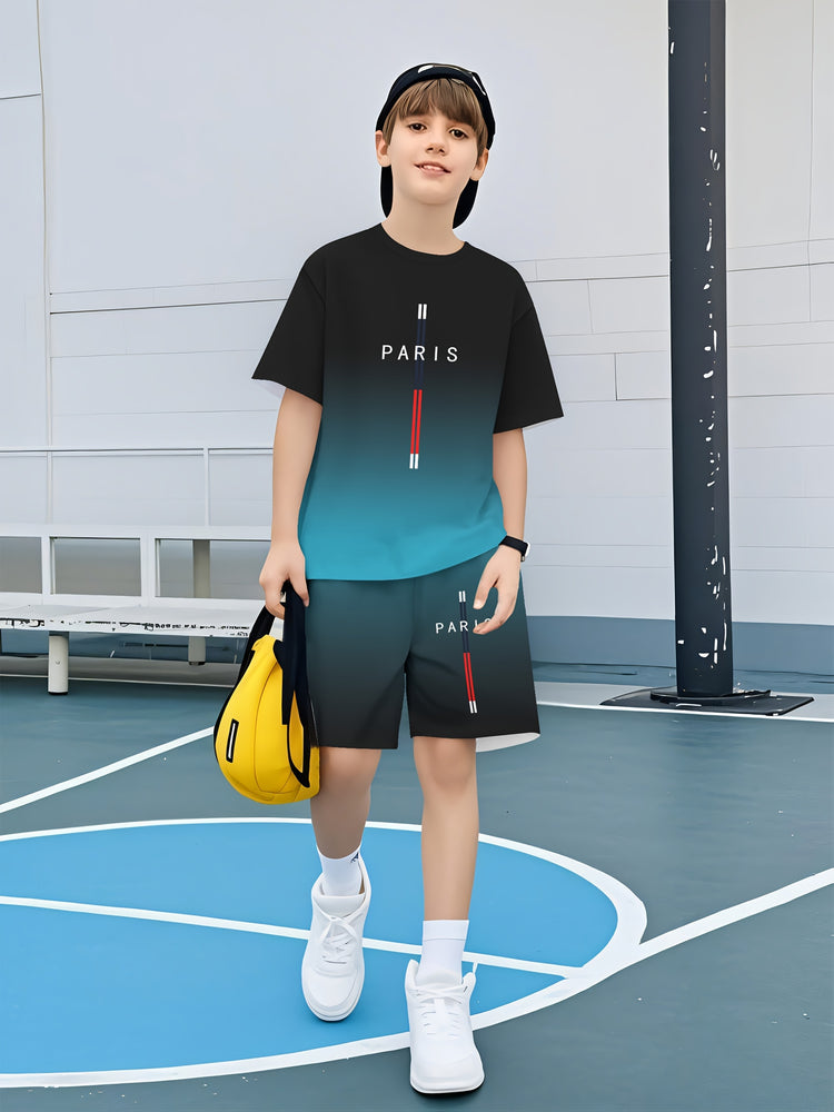 Ensemble deux pièces haut et short à rayures verticales dégradées bleues