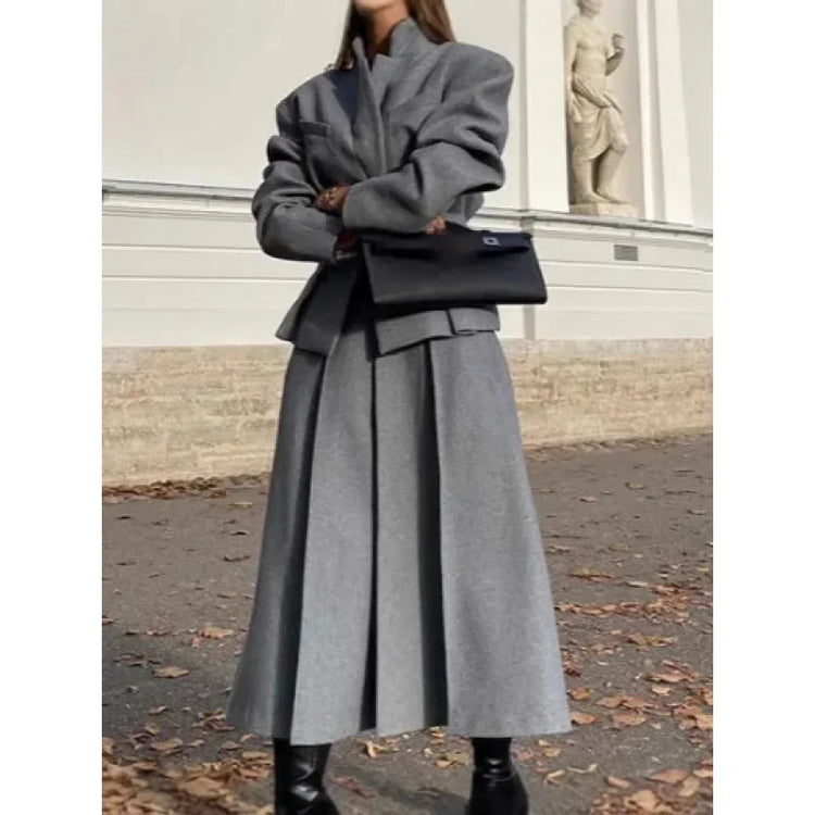 • Style polyvalent :La combinaison manteau de couleur unie et jupe en laine offre une polyvalence, parfaite pour diverses occasions, du travail aux événements formels.
