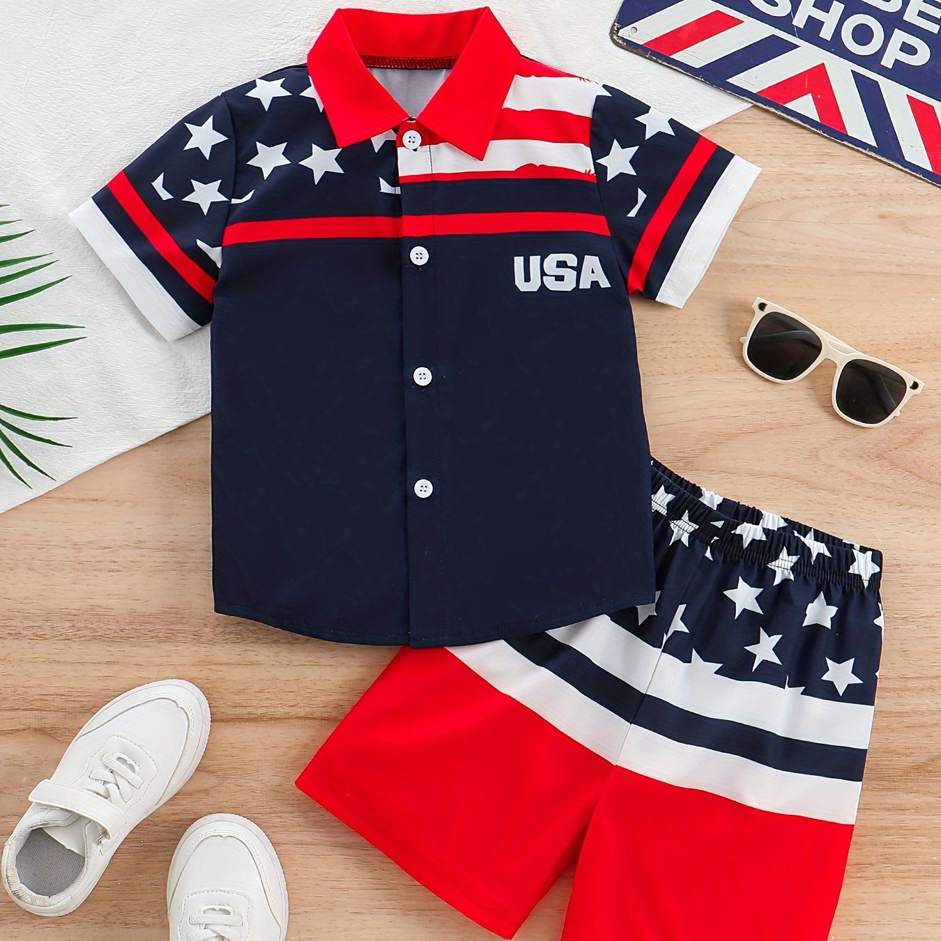 Ensemble chemise à manches courtes et short inspiré du drapeau américain