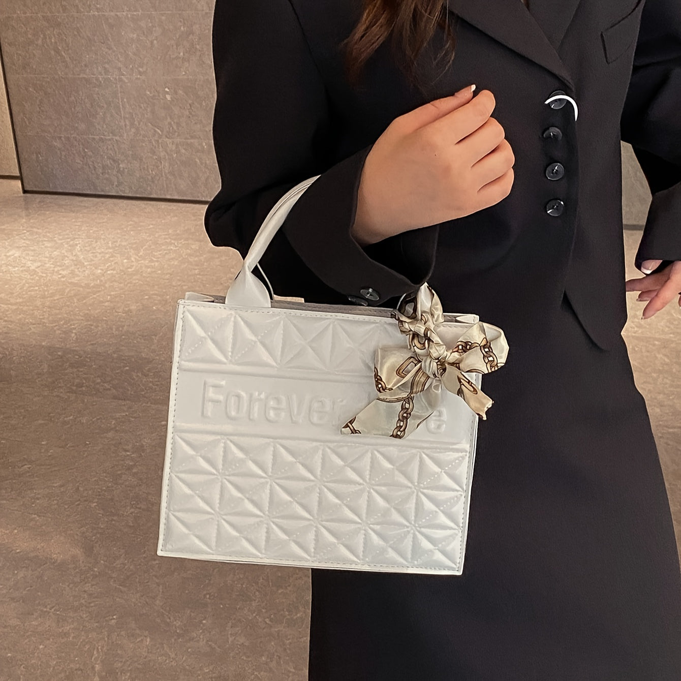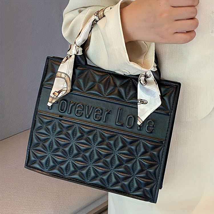 Sac fourre-tout matelassé pour femme avec foulard beige clair et motif « FOREVER LOVE »