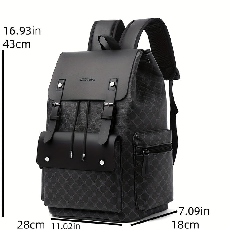 Sac à dos synthétique noir élégant pour homme avec imprimé « LOOK » – Grande capacité, double bandoulière