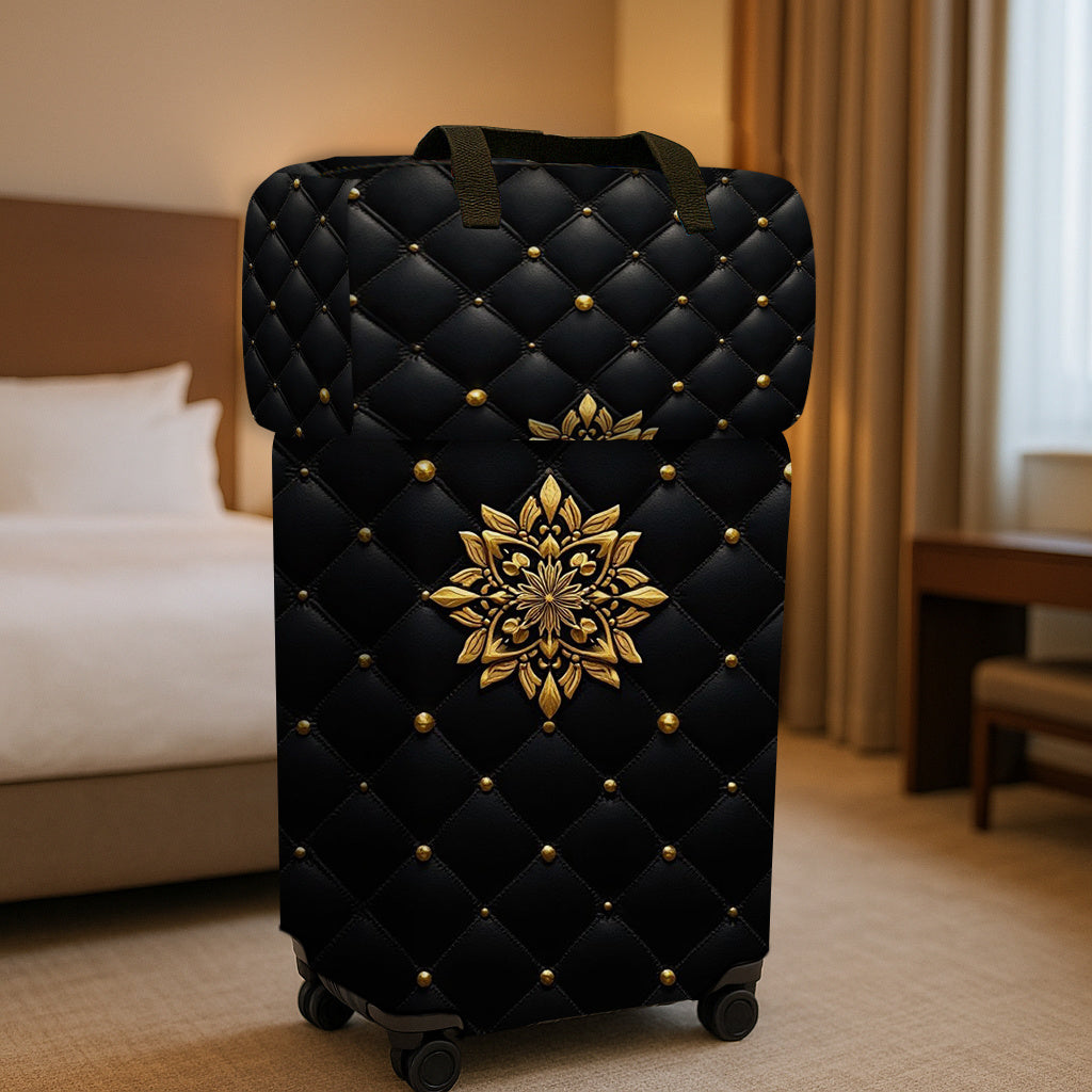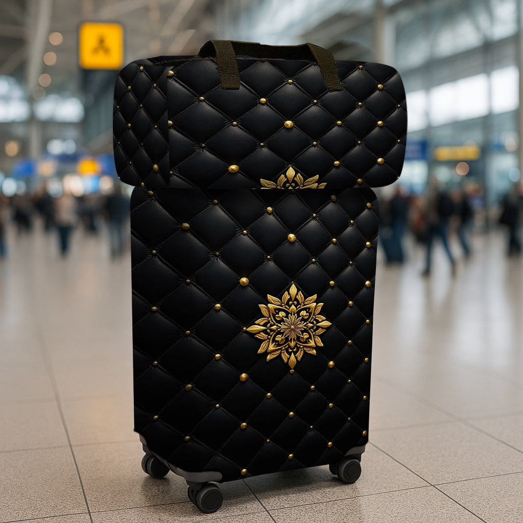 Ensemble de 2 valises de voyage (1 housse de protection + 1 sac de voyage), avec imprimé floral géométrique noir et doré