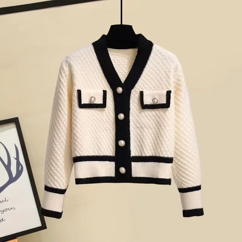 • Chanel-inspired design: This two-piece set features a chic Chanel-inspired design, featuring a V-neck cardigan with contrasting color stitching and high-waisted wide-leg pants for a sophisticated look.
