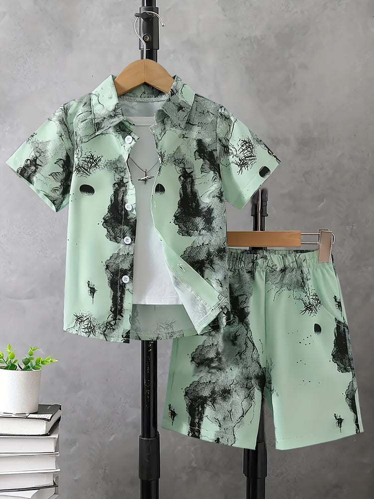 Tenue d'été pour garçon : ensemble chemise et short à imprimé dégradé d'encre