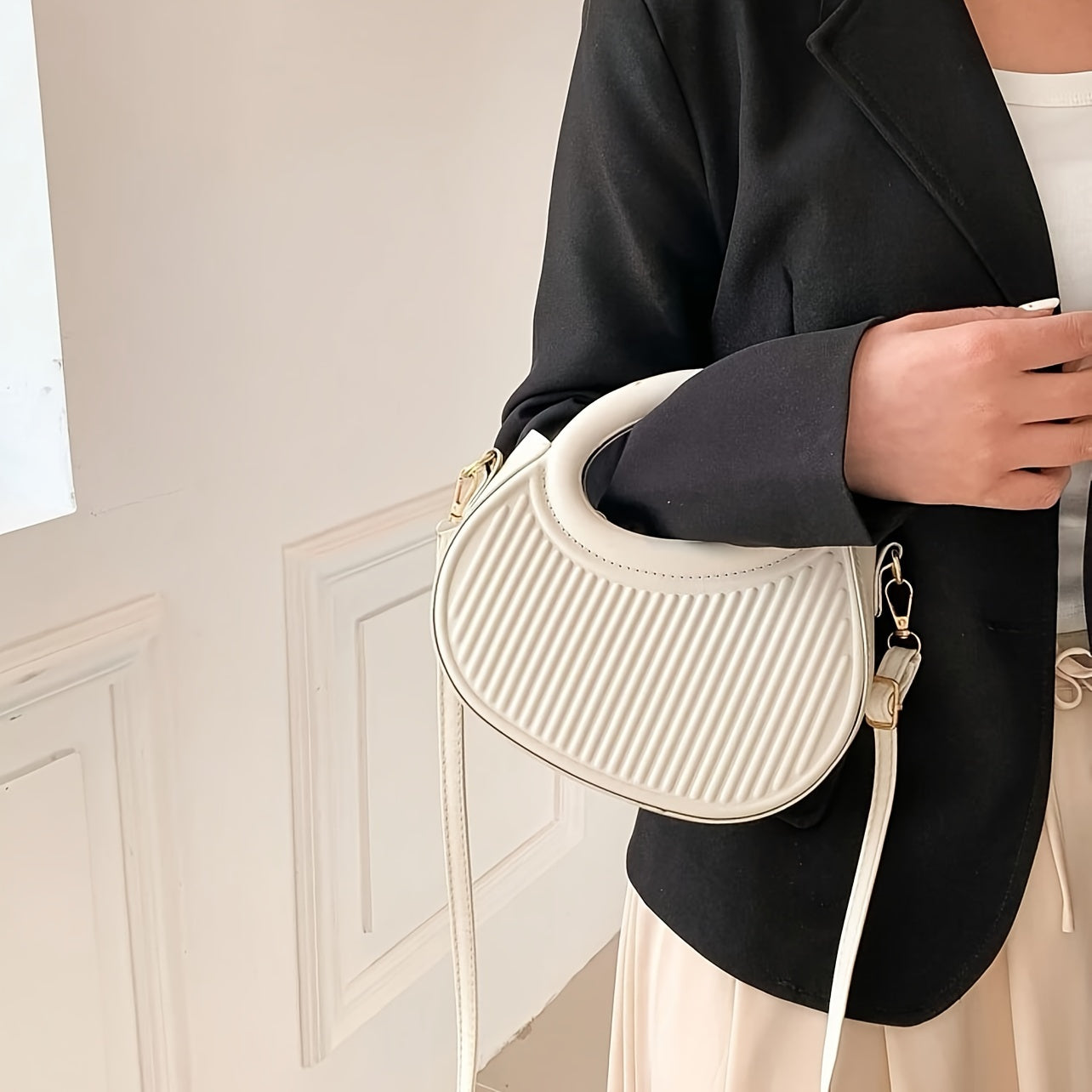 Sac à main élégant en cuir synthétique avec finitions dorées