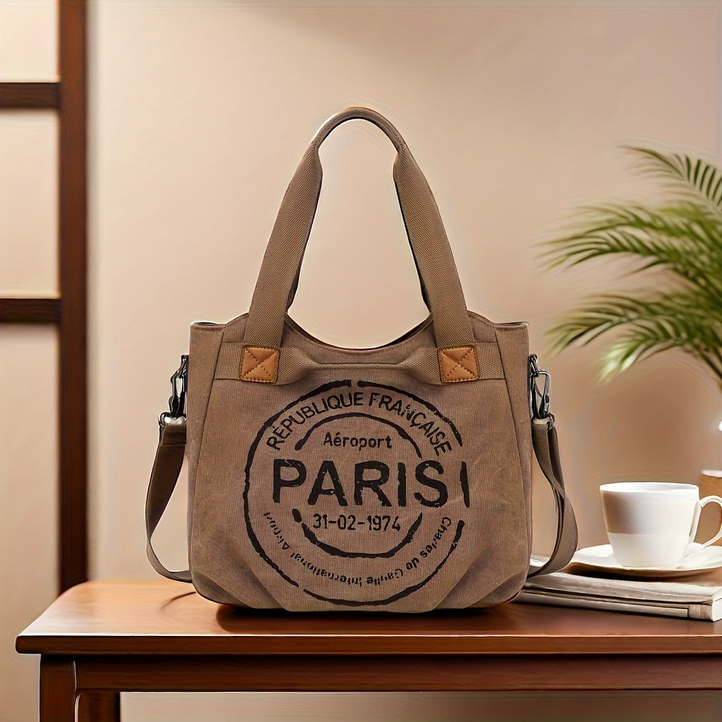 Sac à bandoulière préférentiel pour femme, grande capacité, imprimé lettre, style vintage