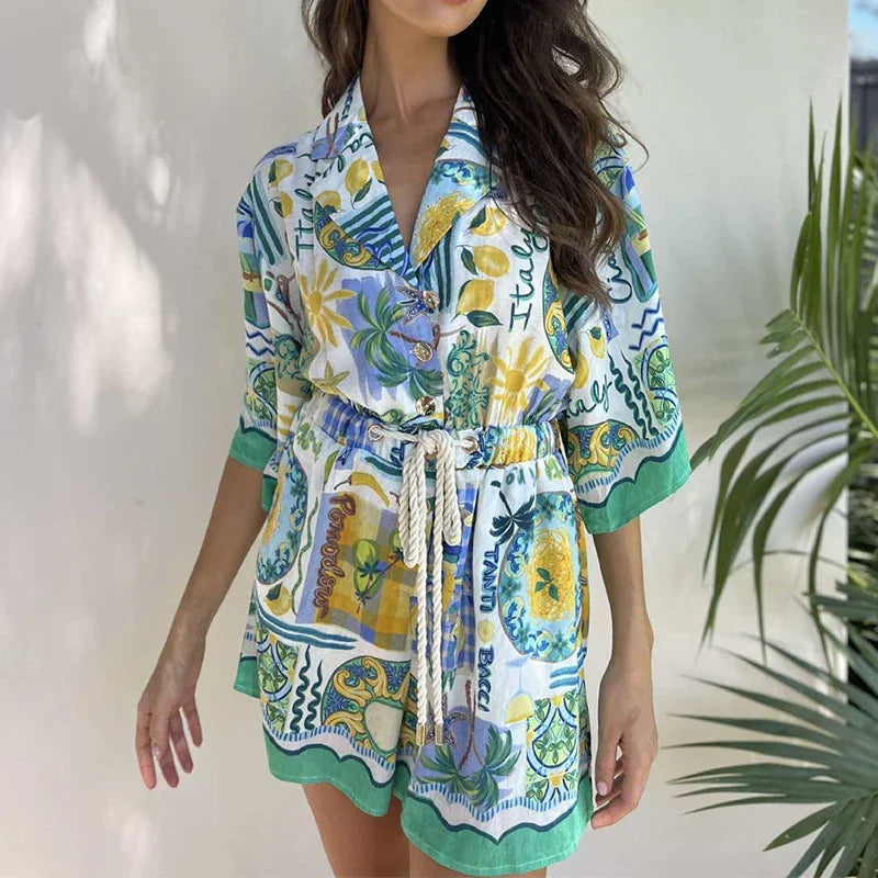 Combishorts élégant col à revers à lacets Shorts combinaisons